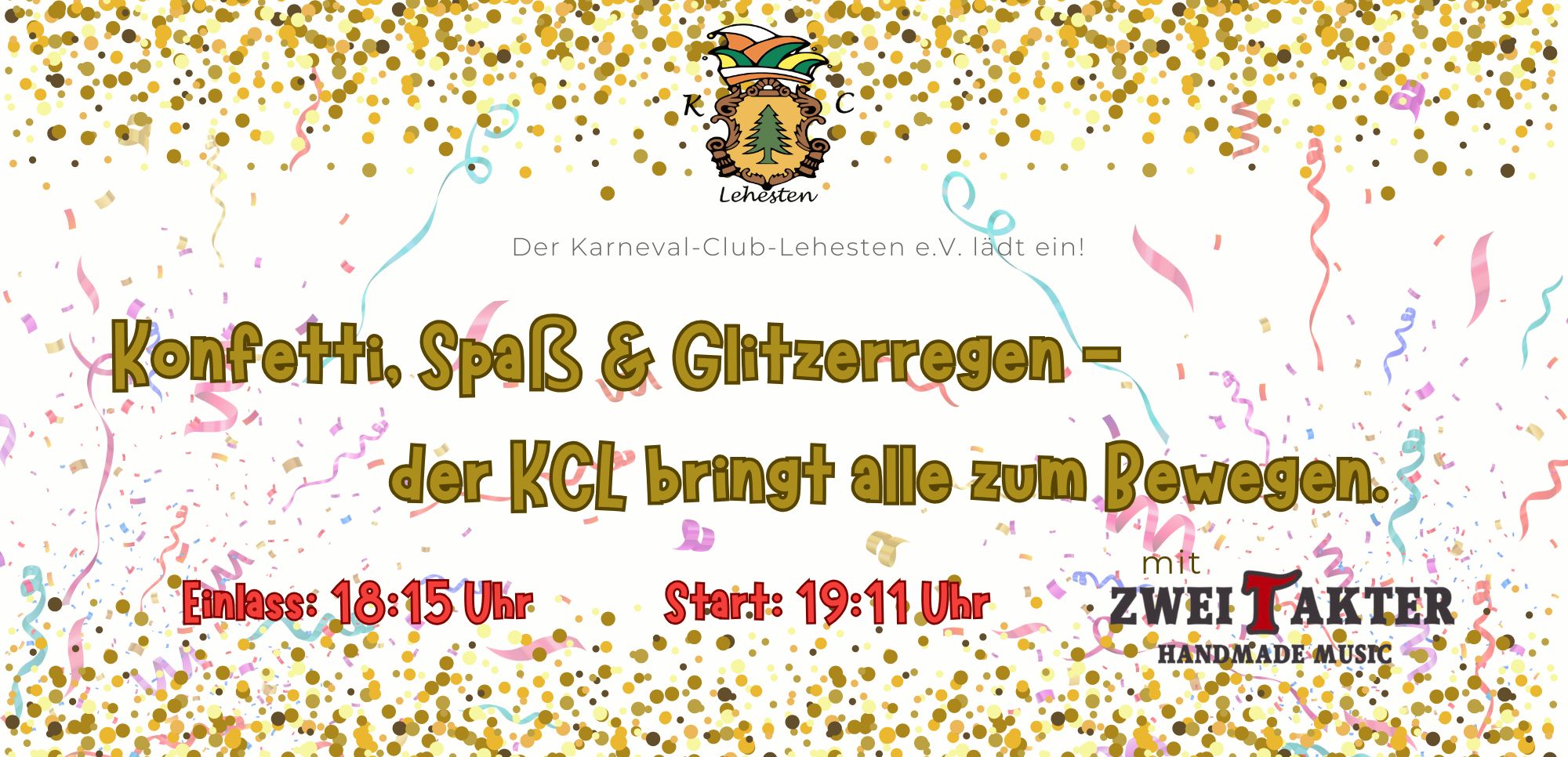 Der KCL lädt ein! Konfetti, Spaß & Glitzerregen - der KCL bringt alle zum Bewegen. Start: 19:11 Uhr